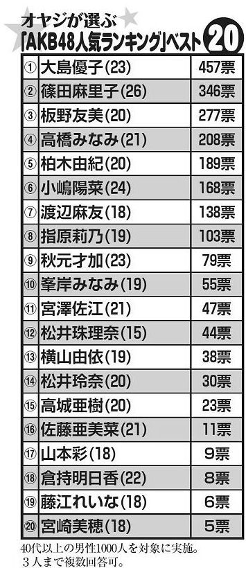 アサヒ芸能「オヤジが選ぶAKB48人気ランキング ベスト20」
