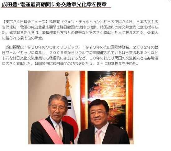 ★韓流ブームをしかけたのは電通 成田会長 韓国と日本の架け橋