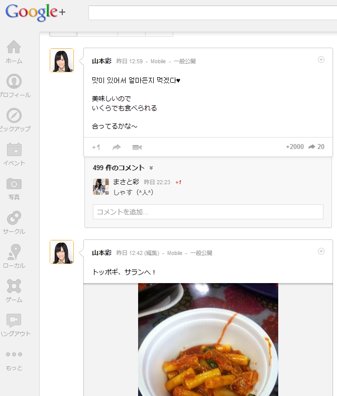 https://plus.google.com/101423472932208115437/posts/DGRM3izCdPz山本彩 12:42 (編集) - Mobile - 一般公開