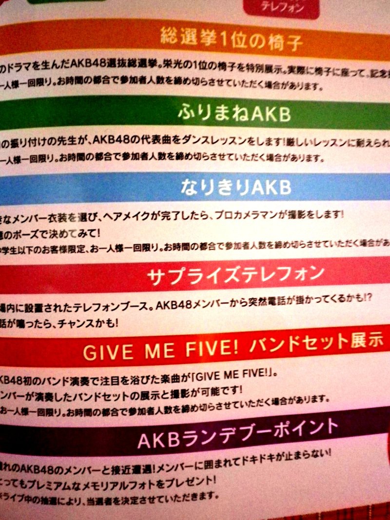 あっちゃん、優子、まりこさま、こじはる、ゆきりん、たかみな、ともちん、まゆゆ、峯岸みなみ、さえちゃん、玲奈、横山ゆい、指原、北原、あきちゃ、島崎って16人メンバー居たんだけどみんな天使ってくらい可愛かった…。特に玲奈!丸山に散々ゆきりんばかにしてたけど生は可愛かった…