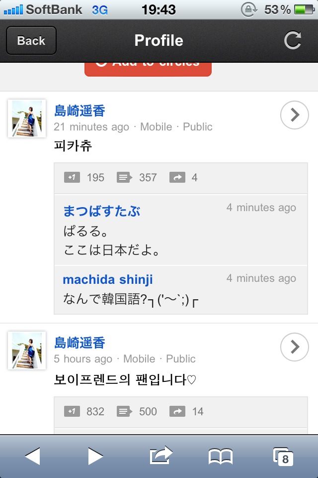 【悲報】島崎遥香がハングルで何かつぶやく
