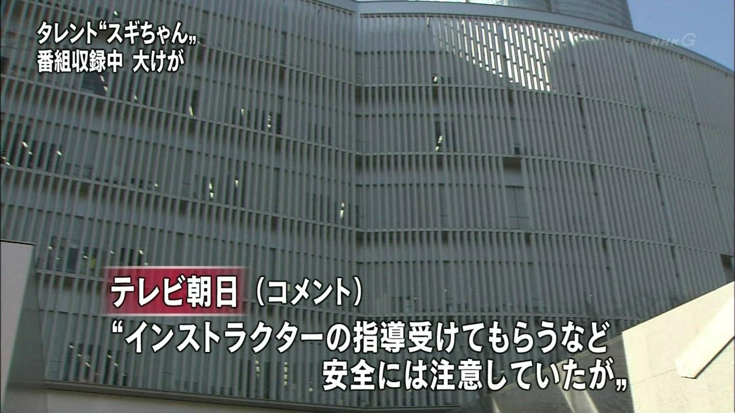 テレビ朝日では「安全には細心の注意を払っておりましたが、結果として杉山さんがケガを負われたことについて、大変申し訳なく思っております。深くおわびするとともに、1日も早い回復をお祈り申し上げます。状況をよく調査した上で、再発防止策を徹底してまいります」とコメントしている。