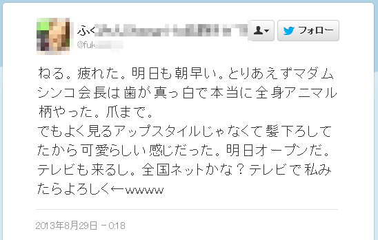 とりあえずマダムシンコ会長は歯が真っ白で本当に全身アニマル柄やった。爪まで。
