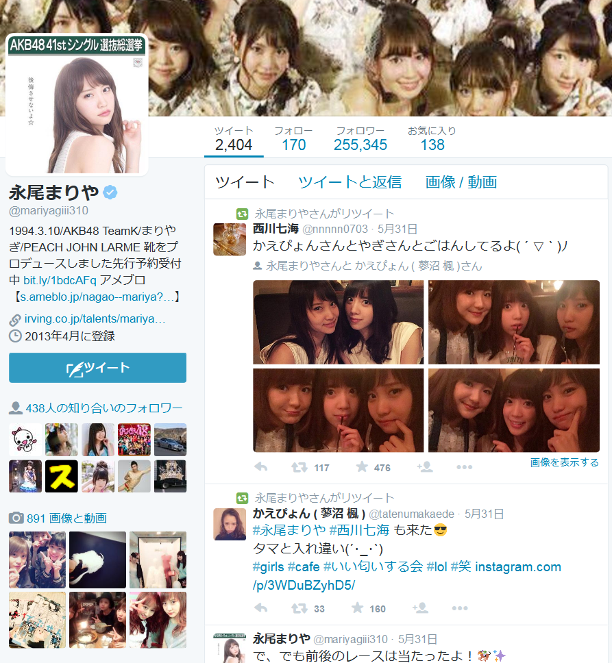 ■読モ藤田富のツイッター裏アカ流出「渡辺美優紀と永尾まりやとLINEなう」
