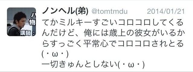 藤田富「てかミルキーすごいコロコロしてくるんだけど、俺には年上の彼女がいるからすっごく平常心でコロコロされとる」