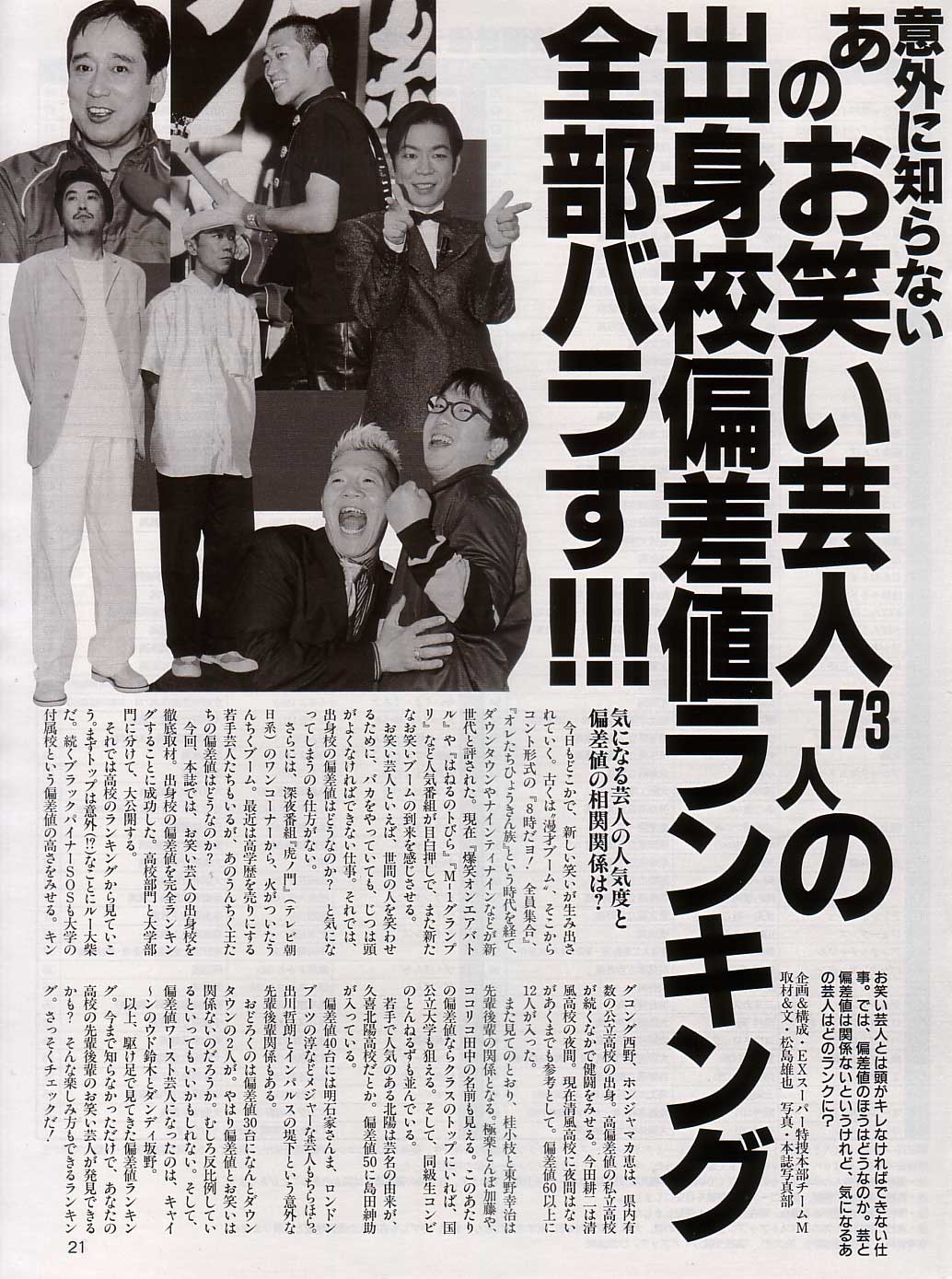 お笑い芸人173人の出身校偏差値ランキング 全部バラす!!!