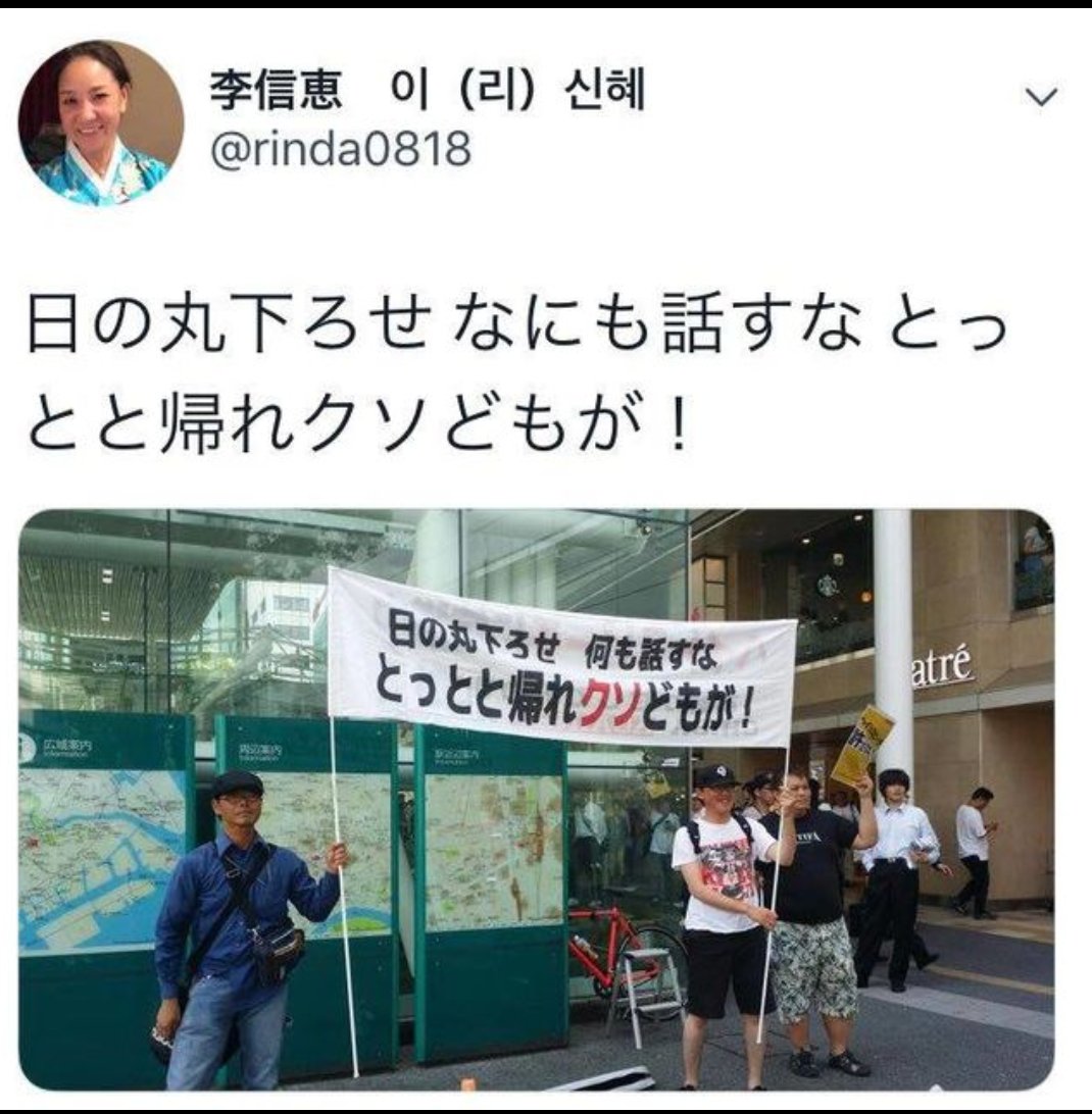李信恵「日の丸下ろせ なにも話すな とっとと帰れクソどもが!」
