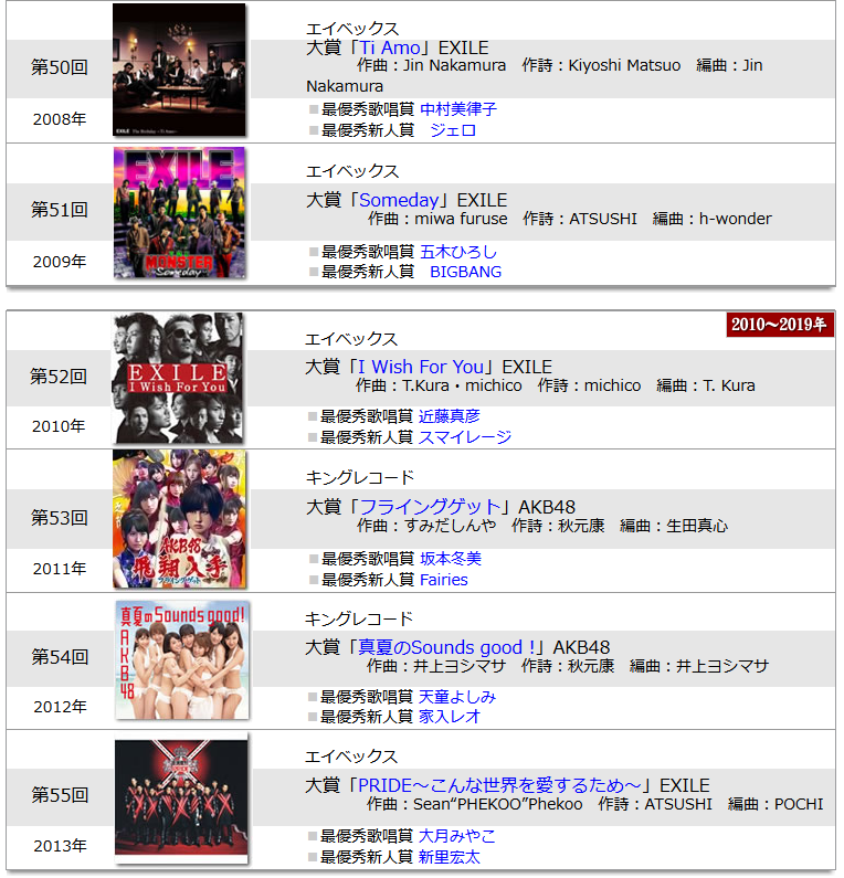 第50回 2008年 EXILE Ti Amo