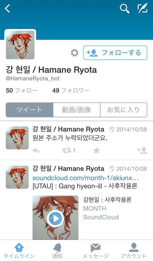 ハマネリョウタの名前でハングルのツイッター