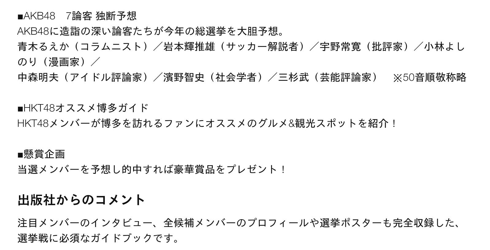 総選挙公式ガイドブック表紙と選挙結果
