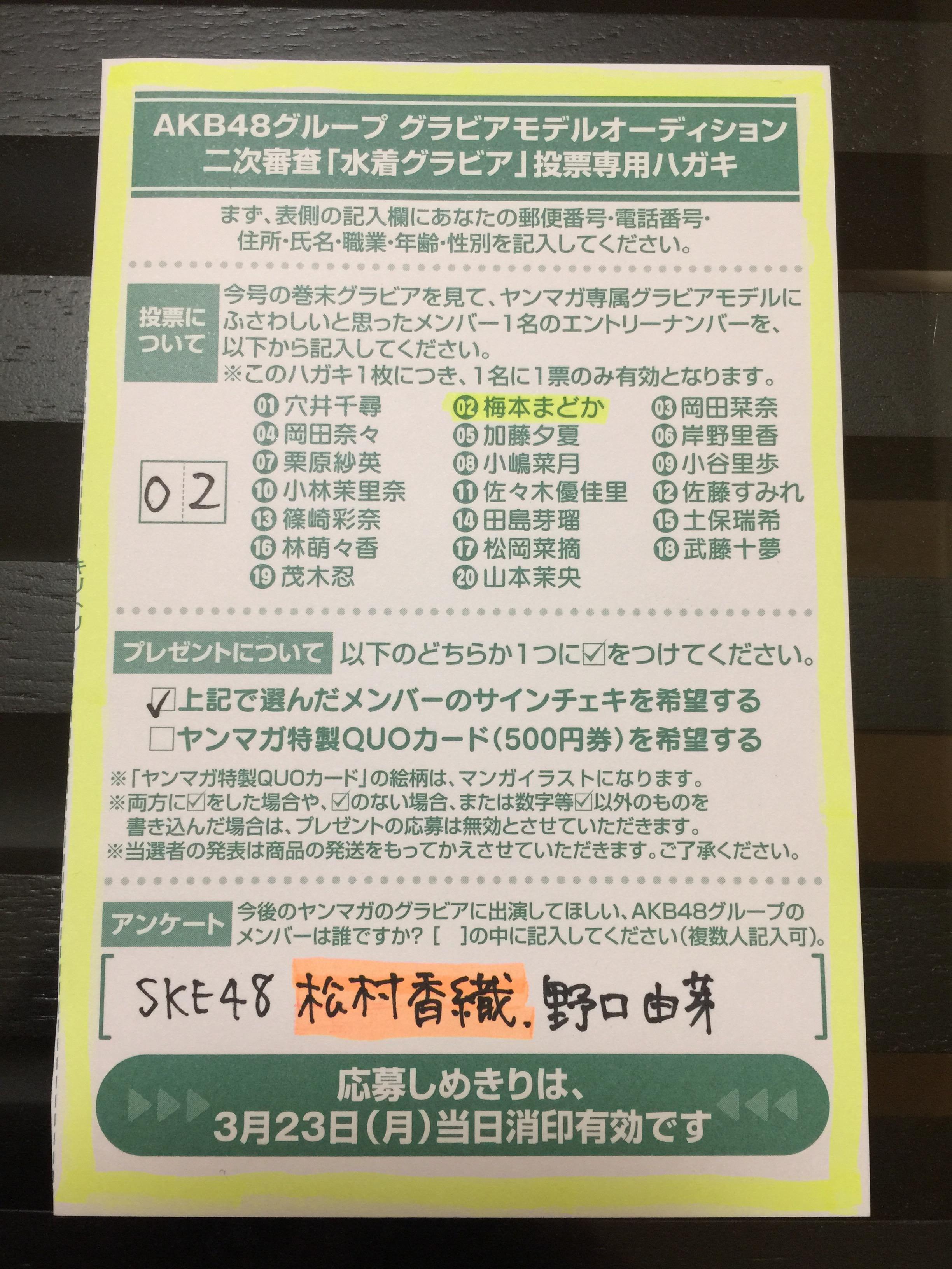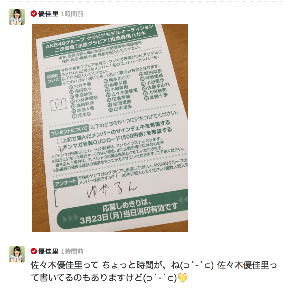 ヤンマガの発行部数からしたら、投票してる人って本当にごくわずかなんだね。