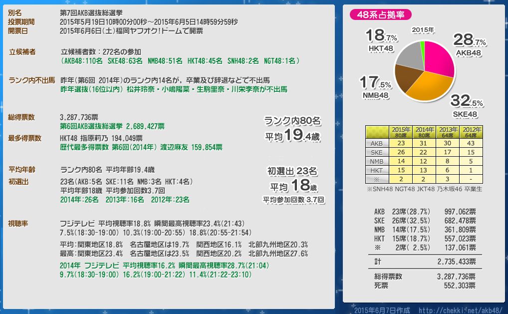 ■AKB総選挙2015の視聴率 第1部7.5% 第2部10.3% 第3部18.8% 瞬間最高は23.4%