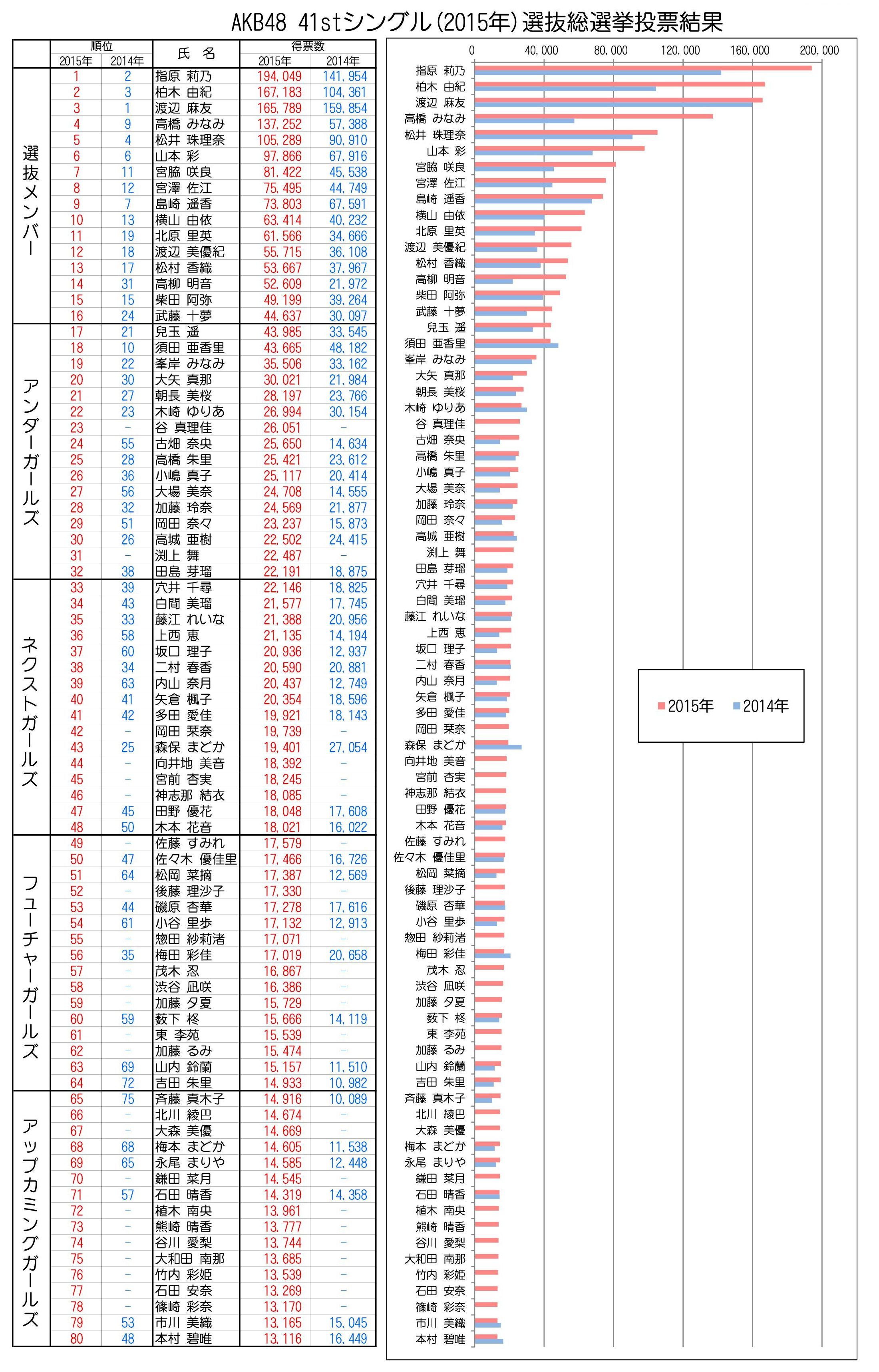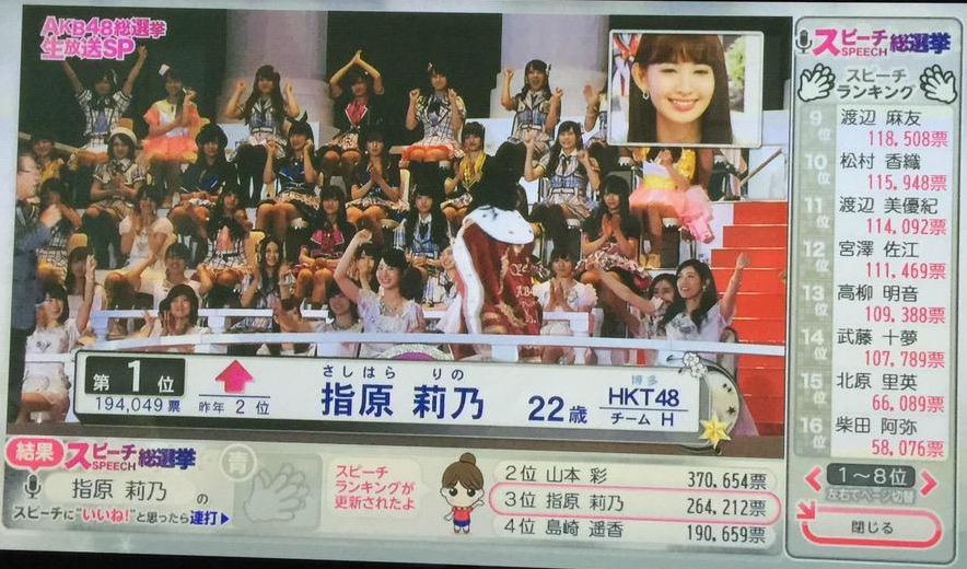 3.指原 +52,095 194,049票←141,954票