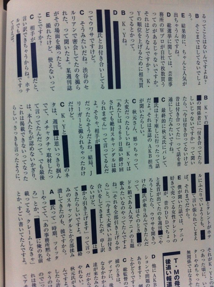 C:最終的に秋元氏にバレて大●氏は土下座しにいったって話だよ。それは某誌のAKB担当が聞いたらしい。