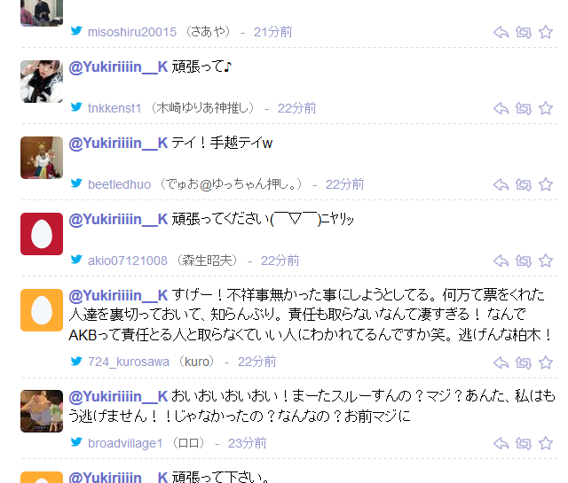 ■AKB柏木由紀ツイッターへのコメント抜粋