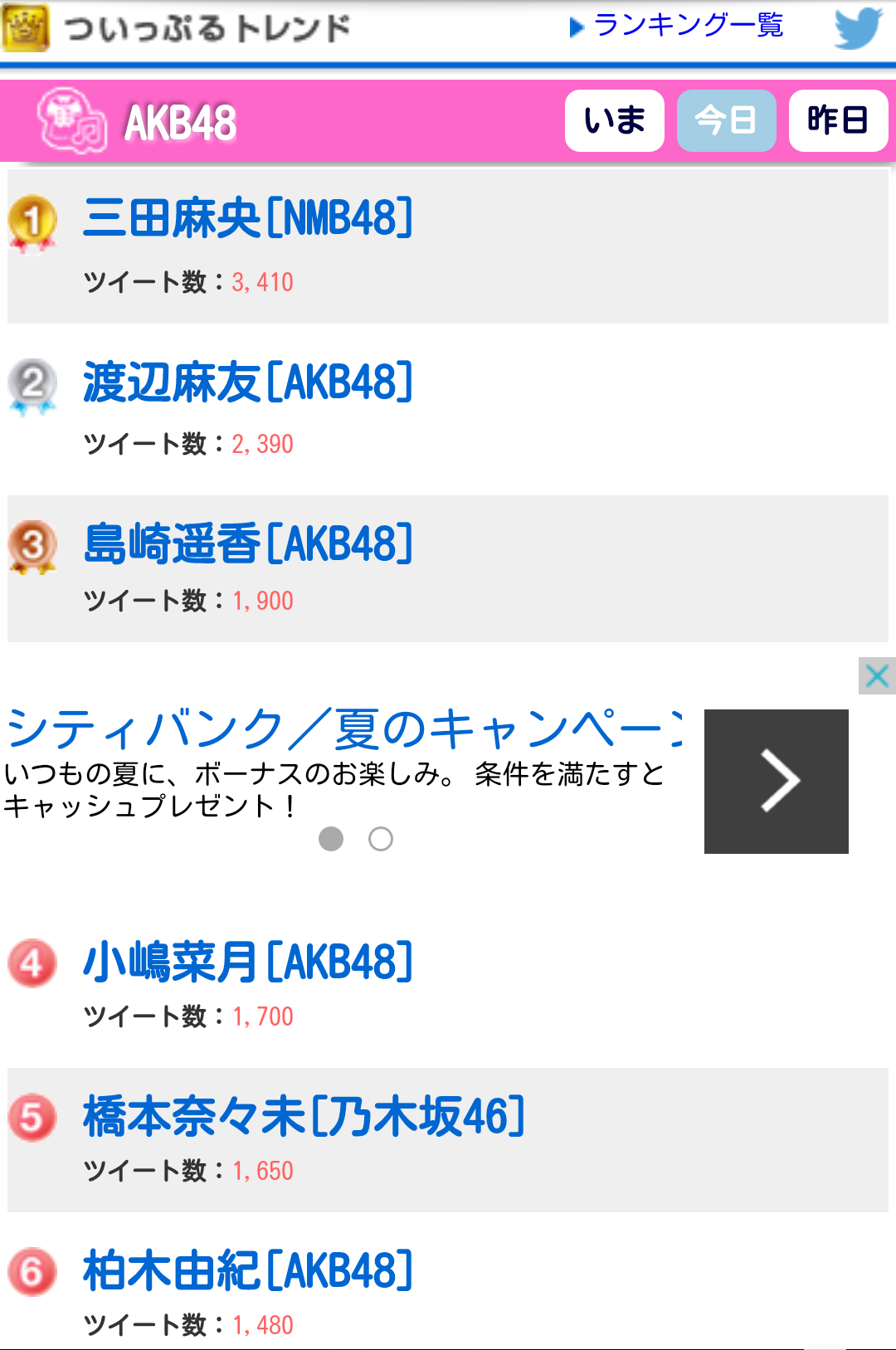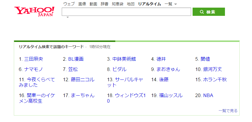 Yahooリアルタイム検索 1時50分現在 1位 三田麻央