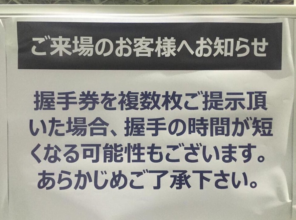 握手券を複数枚出すと握手出来る時間が短くなります、声に出したい日本語ですね。