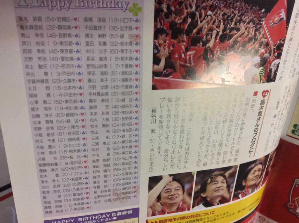 2015年10月3日の浦和レッズ・マッチデープログラムに高城亜樹の名前 (左下)
