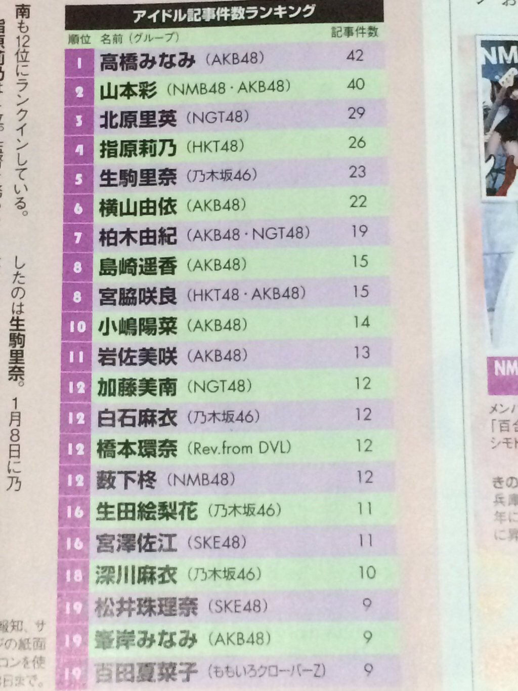 ■11月のアイドルテレビ出演ランキングAKB7位、NMB13位、乃木坂27位、HKT29位、SKE48は総合1998位
