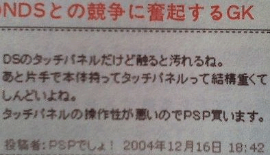 「DSはタッチパネルが汚れるのでPSPを買う」