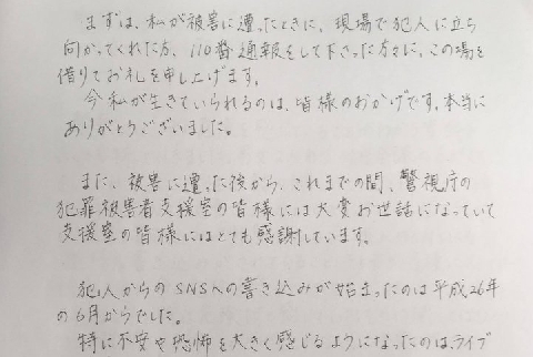東京都小金井市で今年5月、男から刃物で刺されて一時重体となっていた冨田真由さん(21)が12月16日、代理人を通じて手記を発表し、「警察がこの事件のことを本当に反省してくれていないと、また同じことが繰り返されるのではないかと心配です」と現在の心境を明かした。(中略)