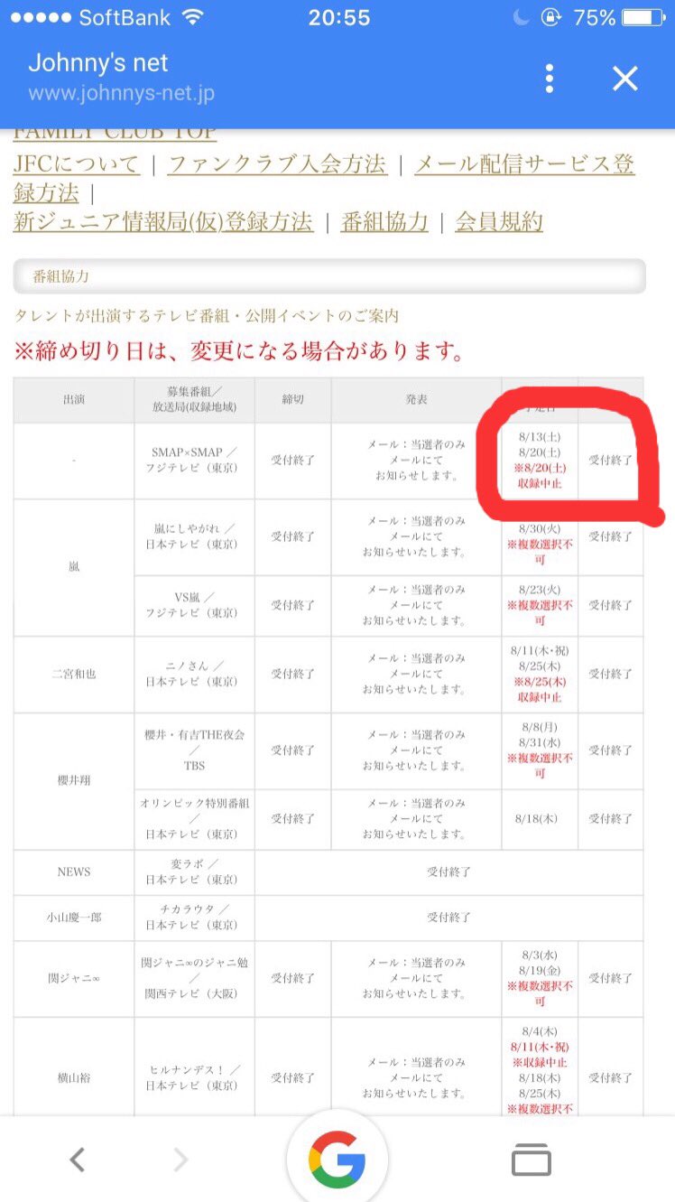 8/20スマスマ、8/25ニノさん、8/11ヒルナンデス収録中止と