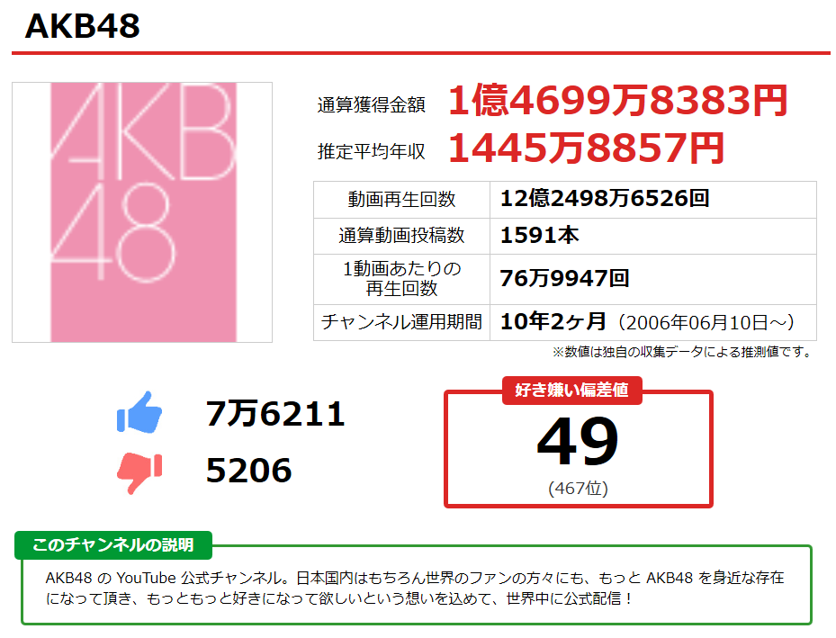 AKB48の月収(2016年8月分)