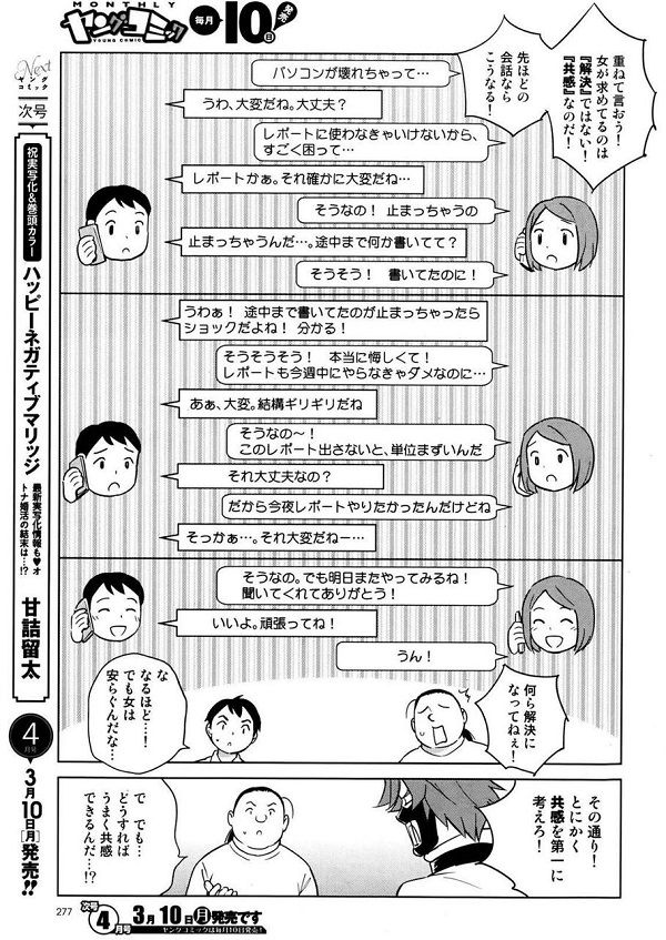 しかし、「(女子に)共感してあげれば良いのに、男子って結論言うじゃないですか。