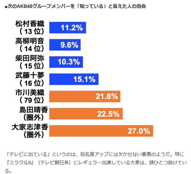 根本的問題は若手が選抜として歌番組に出る以外のテレビ露出が皆無な状況で