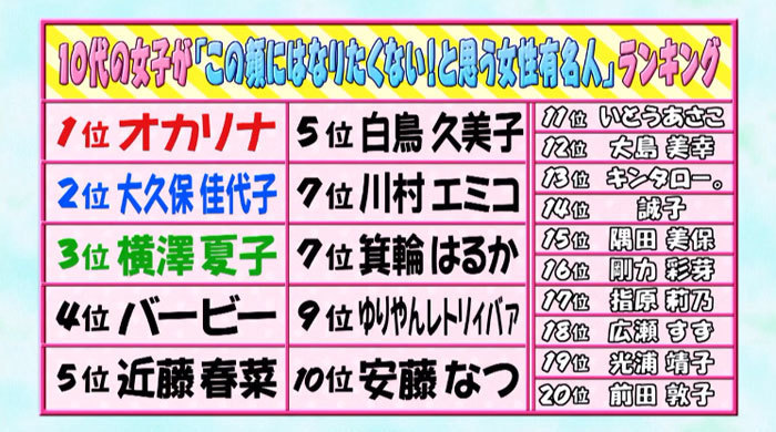 10代が思う「この顔にはなりたくない女性有名人」