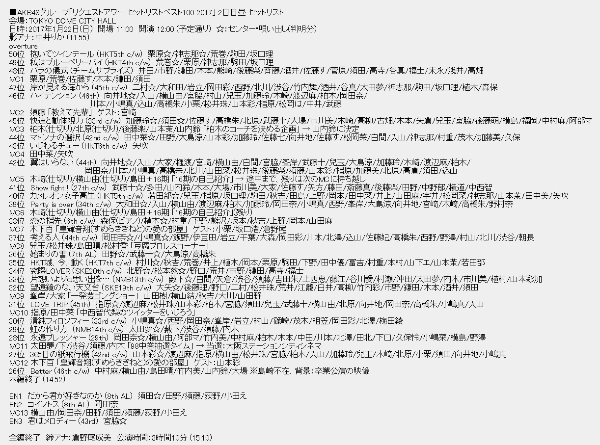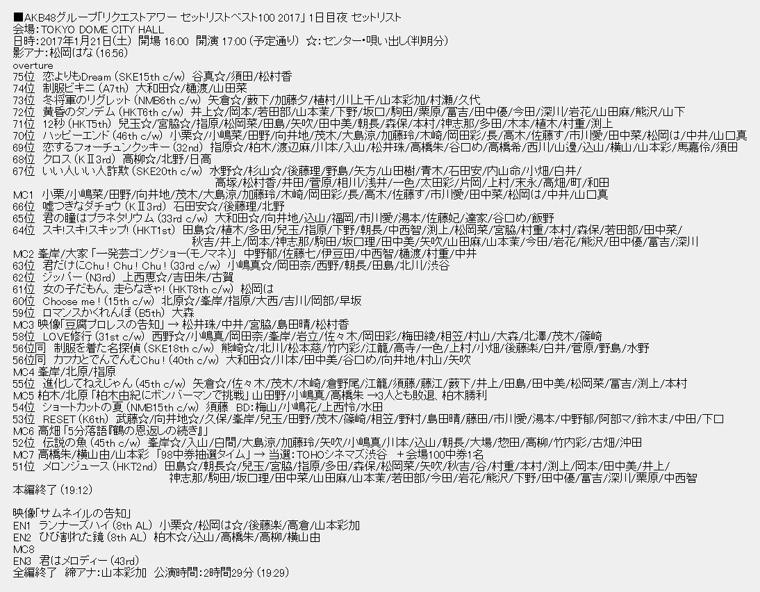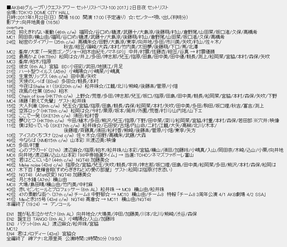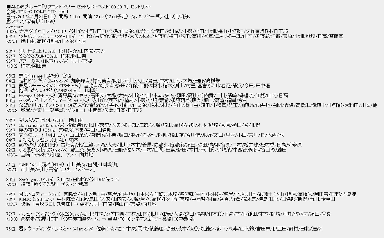 ■AKB48グループリクエストアワー2017 順位