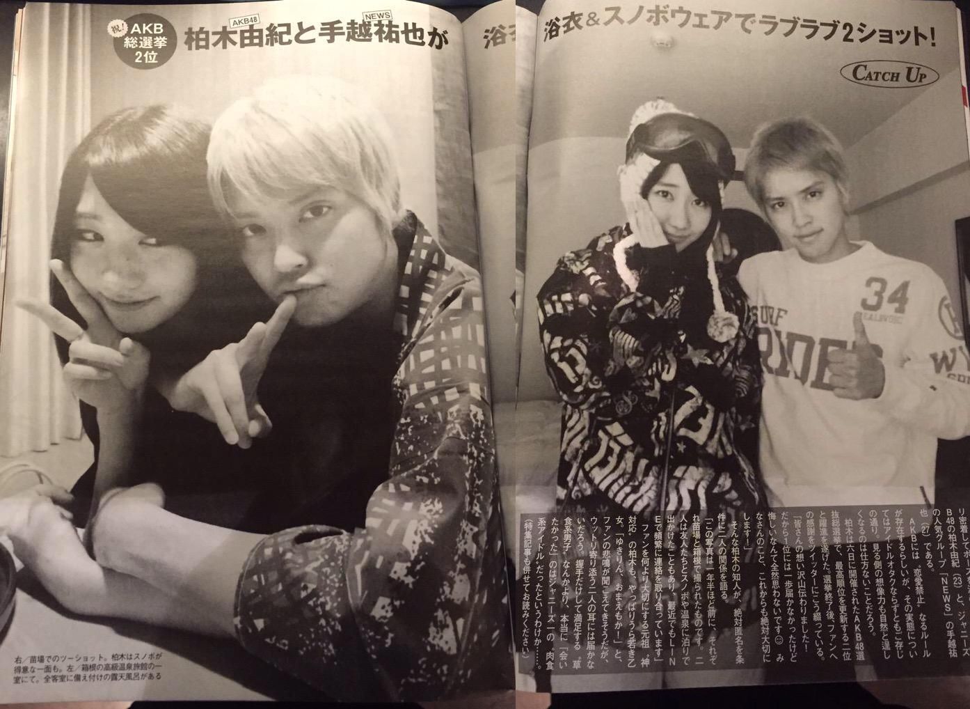 週刊文春「柏木由紀(23)と手越祐也(27)が浴衣&スノボウェアでラブラブ2ショット!」