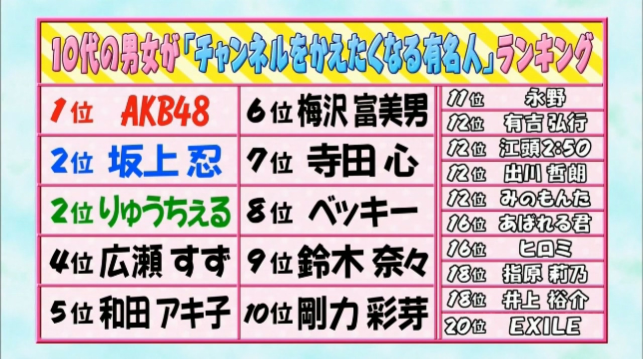 ■「チャンネルを変えたくなる」ランキング1位 沢尻エリカ、2位AKB48