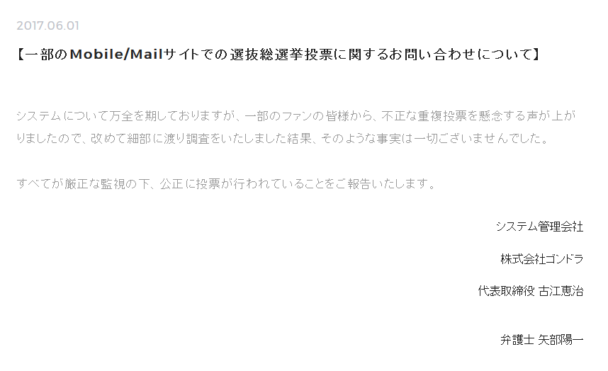 ■指原オタが不正投票の件を管理会社に問い合わせた結果 【電凸】