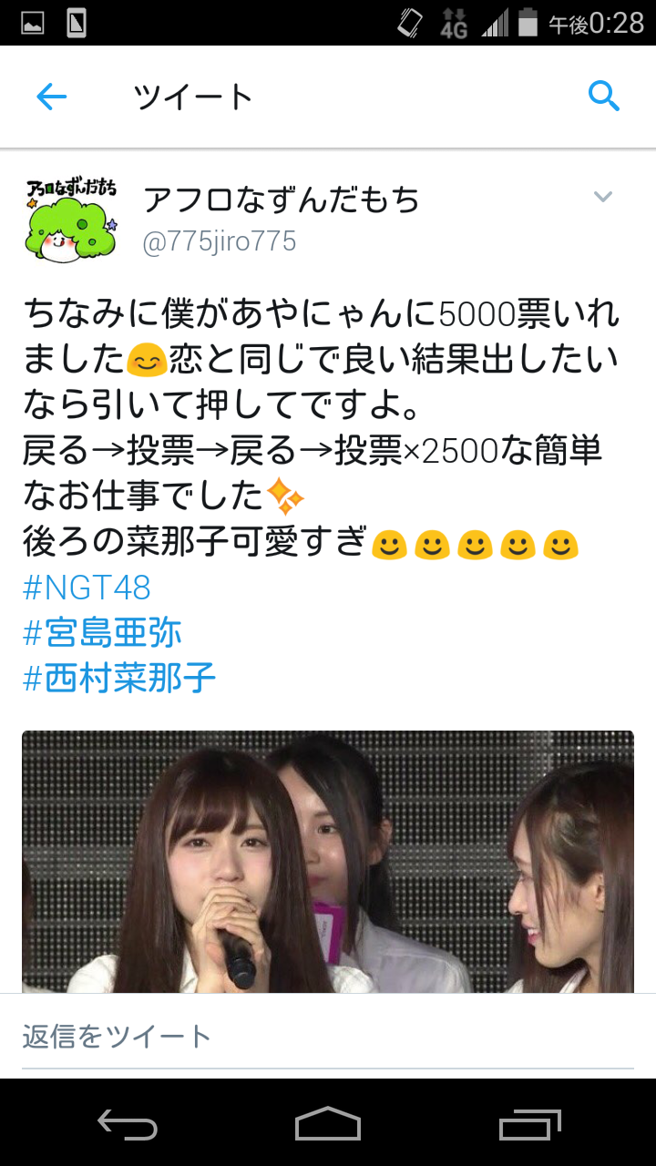 AKB48総選挙速報発表で話題のNGT48mobileを利用した不正投票、画像①?④(時刻に注目)を繰り返すことによりスピーディかつ無限に投票できます。運営さんは何らかの対応をお願いします。 https://t.co/yeW8G0bfRB