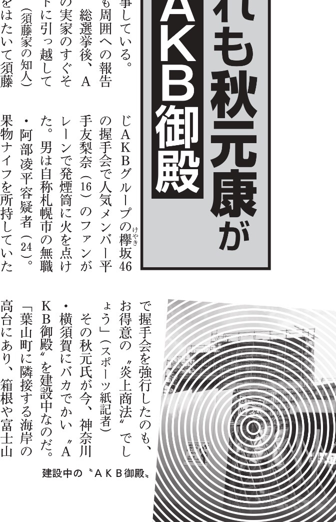 不動産登記簿を見ると、隣接する土地を秋元氏と親交の深い見城徹氏が社長の幻冬舎が購入していることも判明