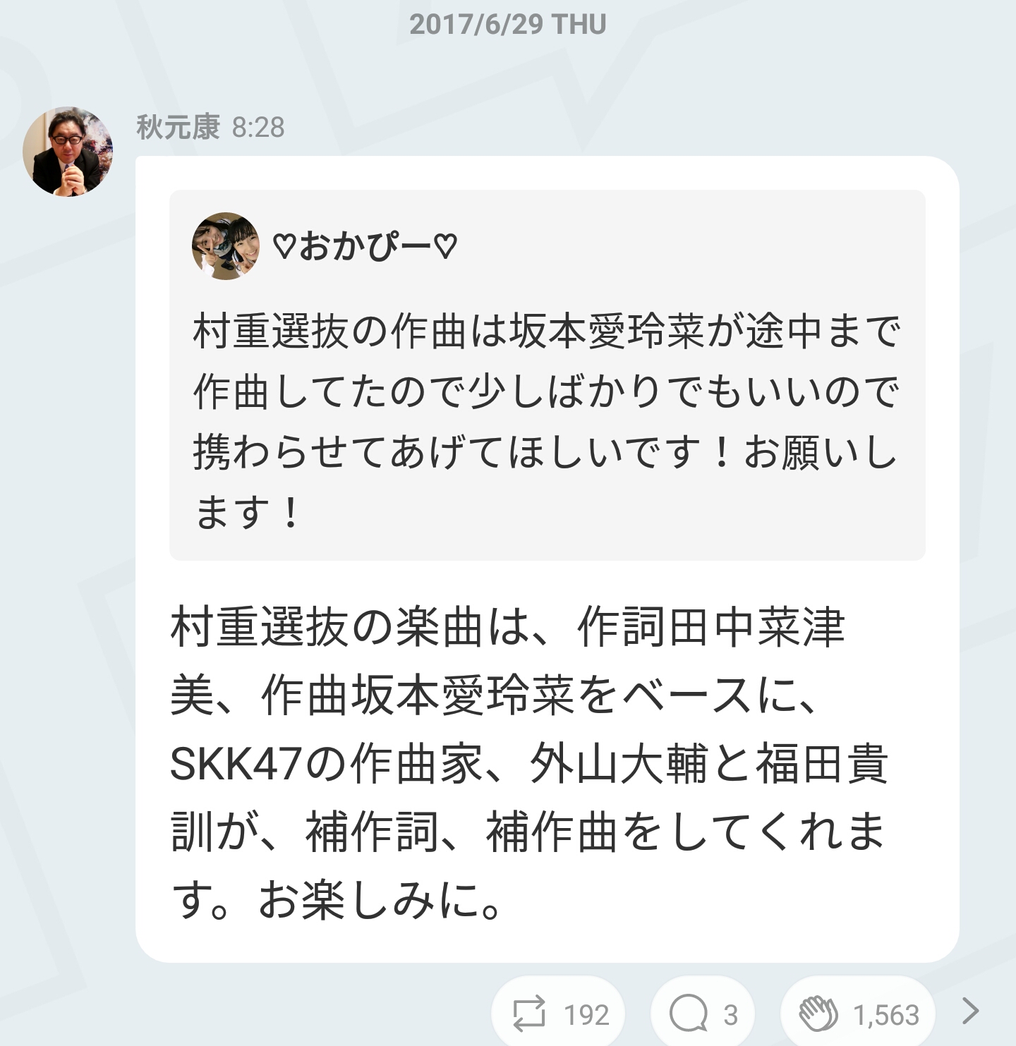 転載元:http://awabi.2ch.sc/test/read.cgi/akb/1498881668/