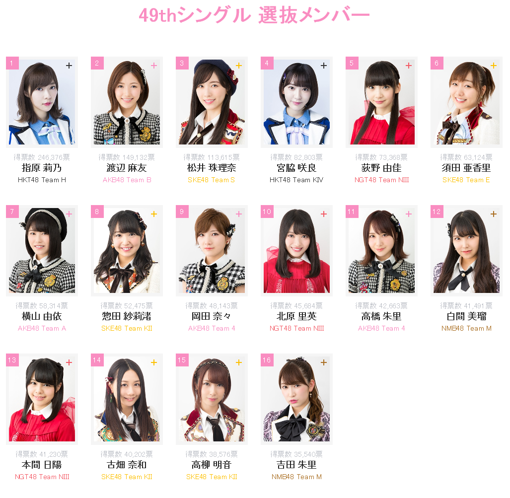 ■AKB総選挙2017最終結果 1位 指原 2位 渡辺 3位 珠理奈