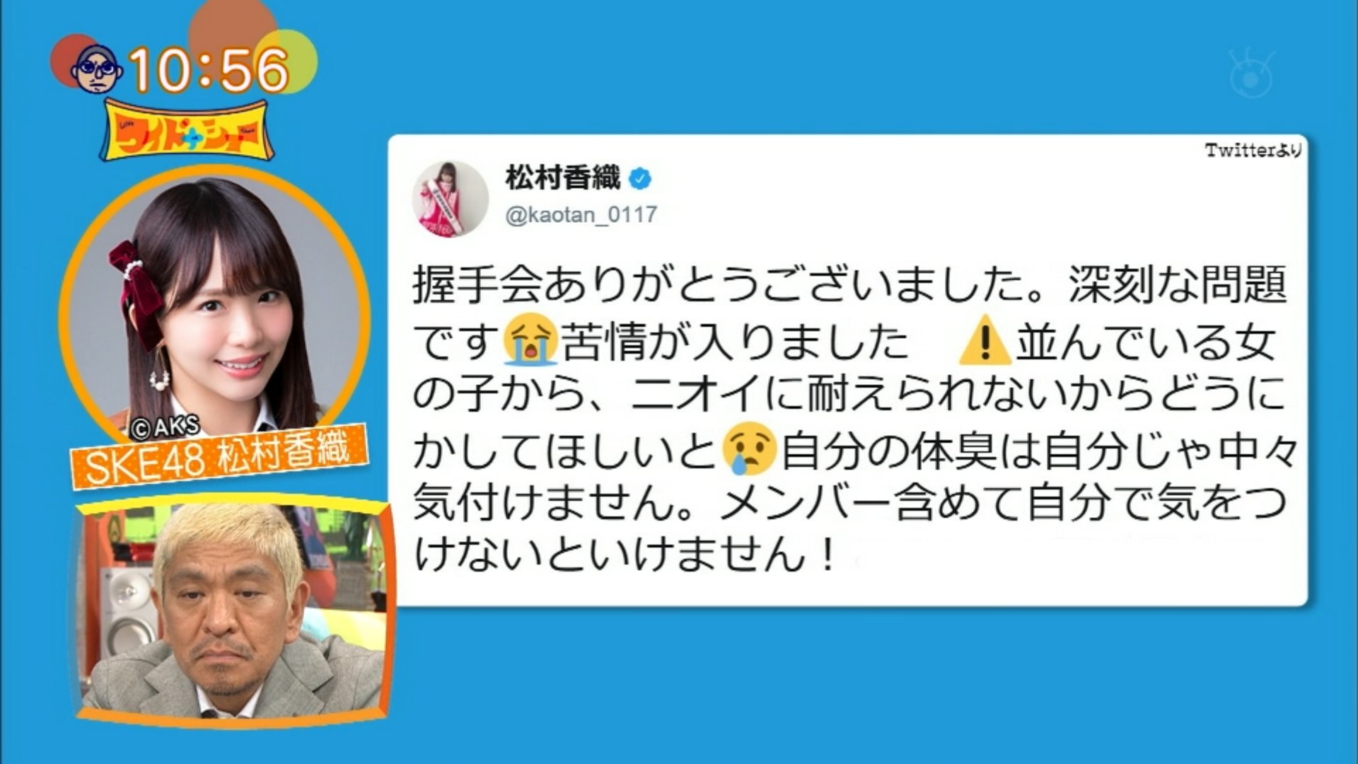 全員が他人の臭いに困ってる的な発言で松村に否定的なコメンテーターは1人もいなかった