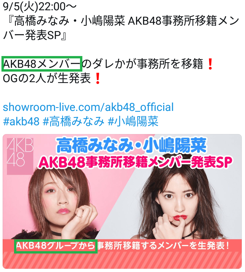 高橋みなみ・小嶋陽菜 AKB48事務所移籍メンバー発表SP