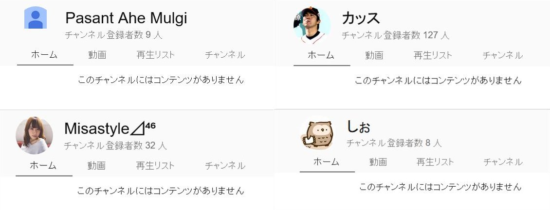 チャンネルを開いても「コンテンツがありません」か別人の動画しか出てこない