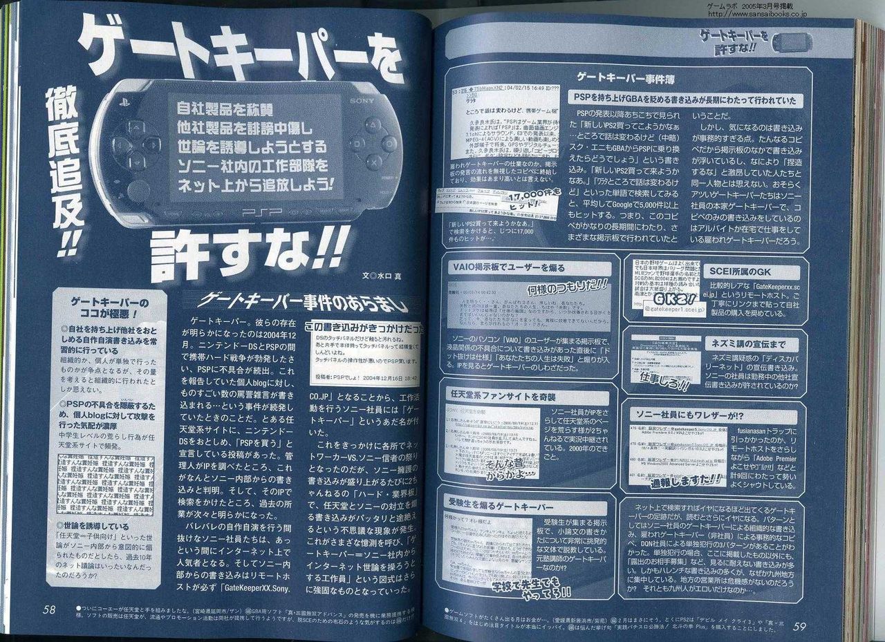 ゲートキーパー問題とは、ソニー社内から複数のウェブサイトにおいて、自社製品を絶賛、他社製品を中傷する書き込みが発見された問題である。