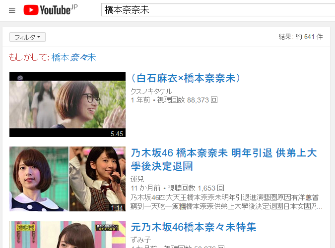 ■YouTube検索 「橋本奈々未」