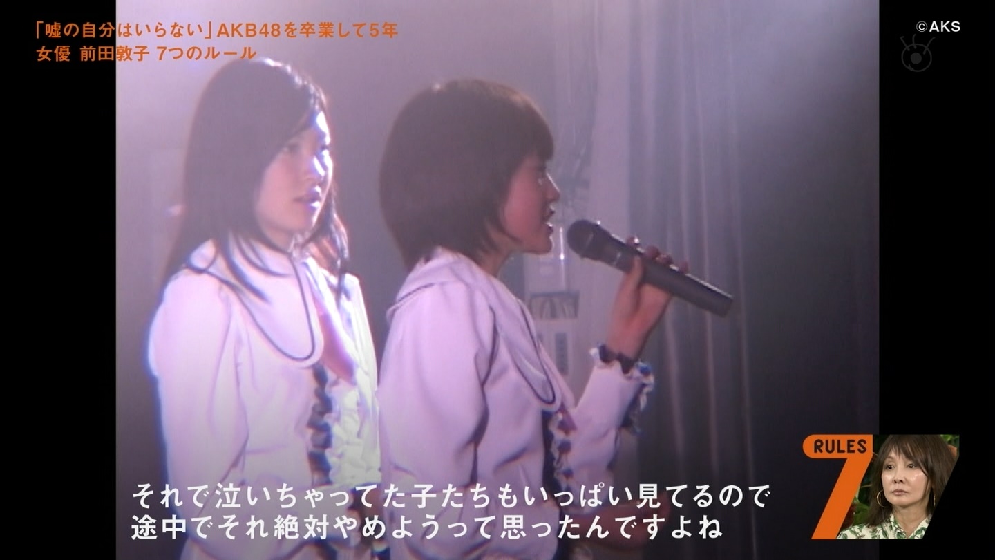 前田敦子:あーまあそうですね。きっとね。私、見ないからあんまり・・・それで左右されることってないので。普通にインターネットで自分の名前なんて絶対検索しない。エゴサーチとか絶対しないです。絶対やだ。