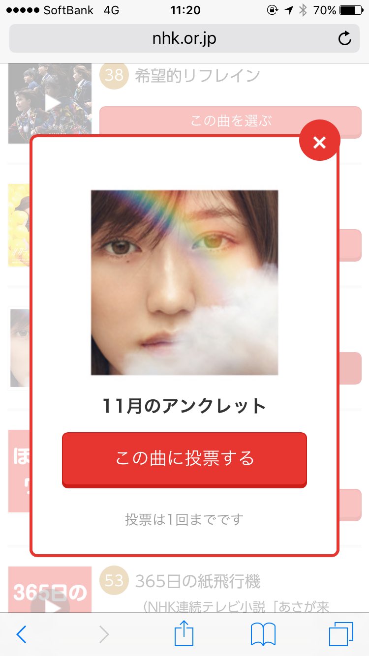というわけで、恋するフォーチュンクッキーに投票してみました????ぜひお好きな曲に投票してくださ?い!