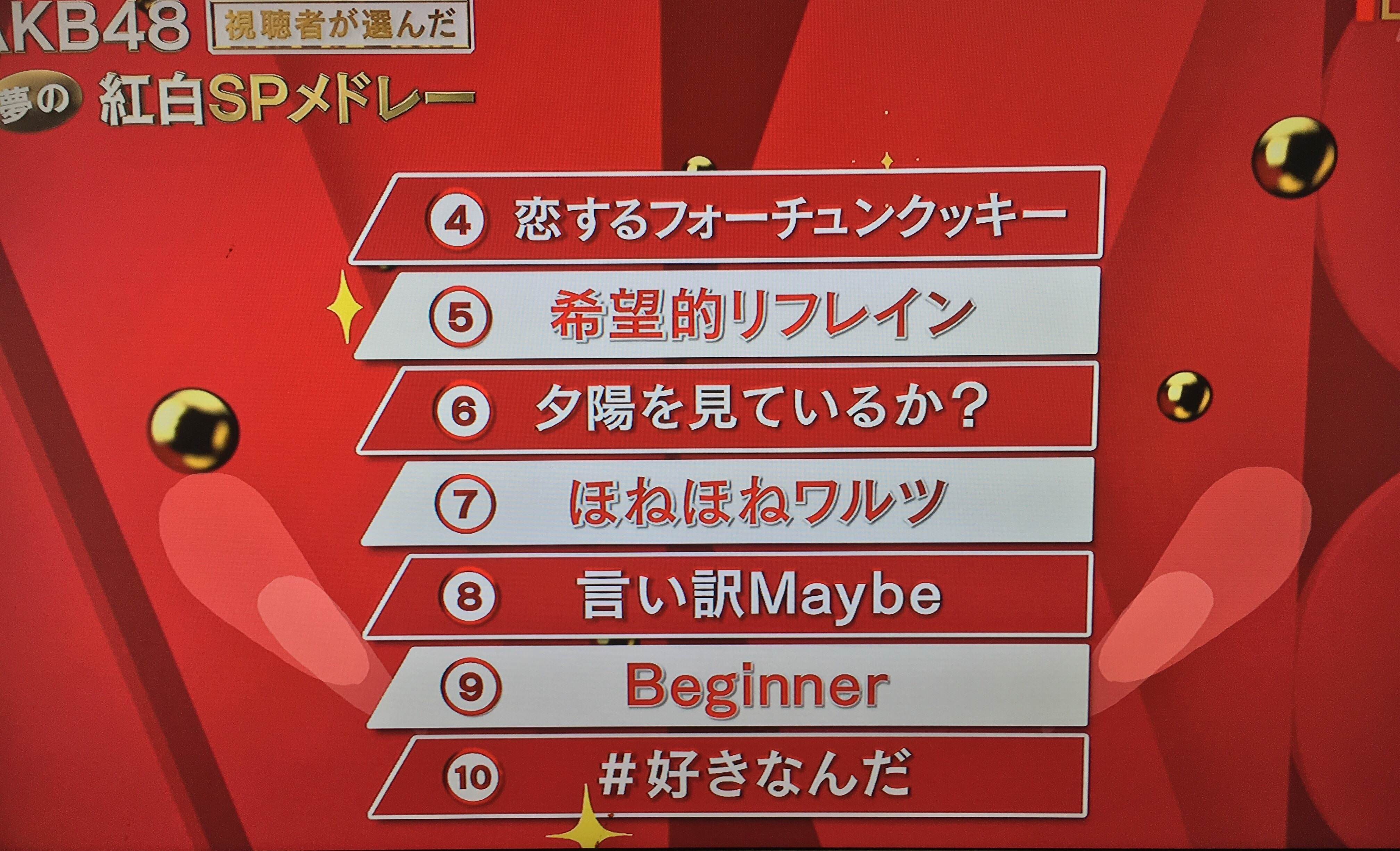 ■【NHK紅白】AKB48曲目・視聴者投票の中間発表!「ほねほね」が8位