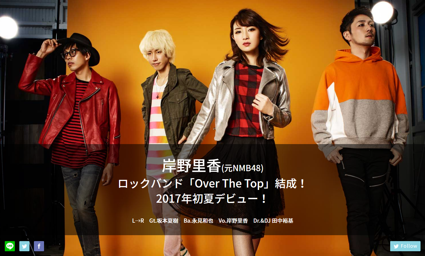 2017年2月20日 岸野がボーカルのロックバンド「Over The Top」を結成
