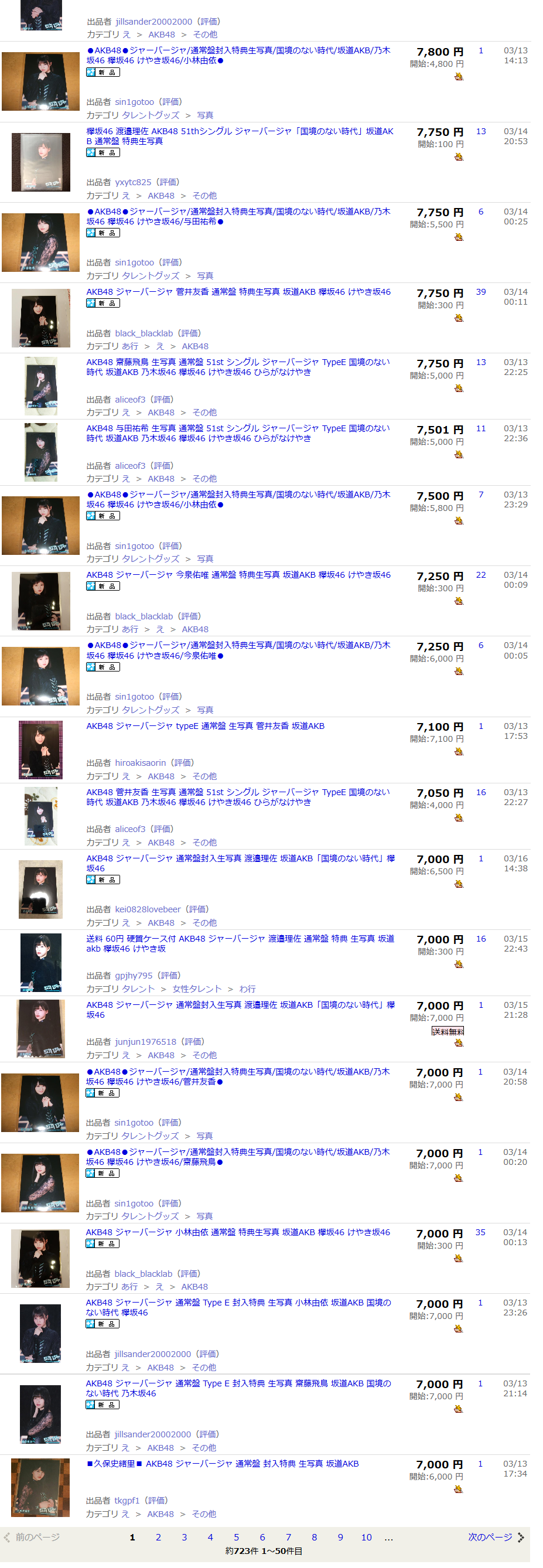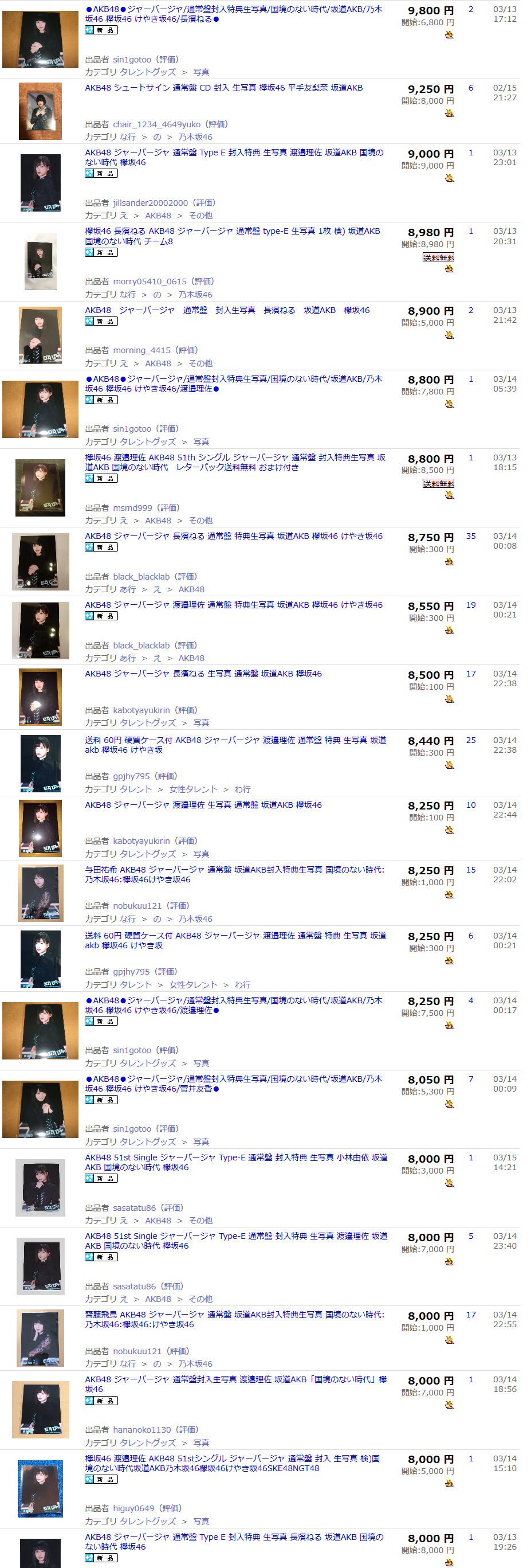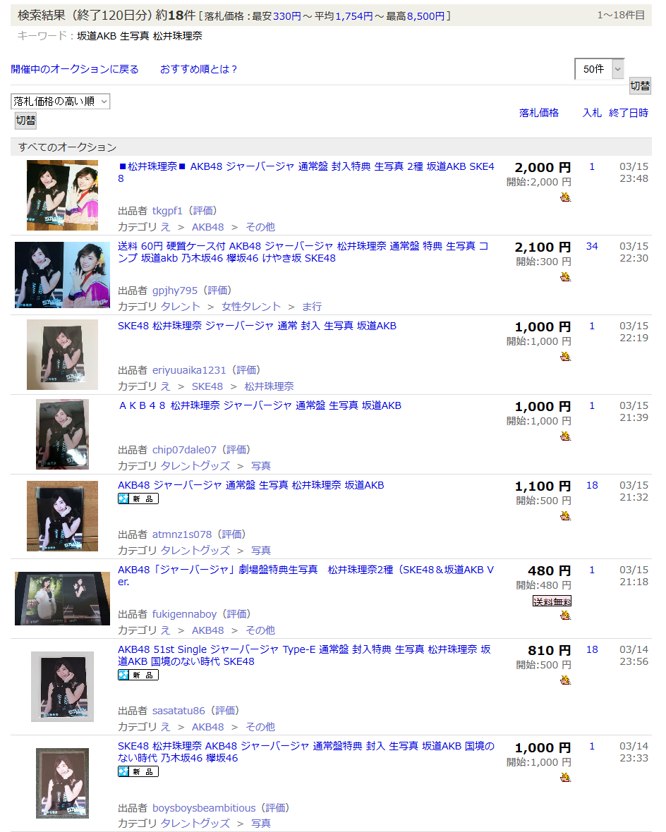 ※参考:ヤフオク「坂道AKB 生写真」検索結果 3月16日 0時36分時点