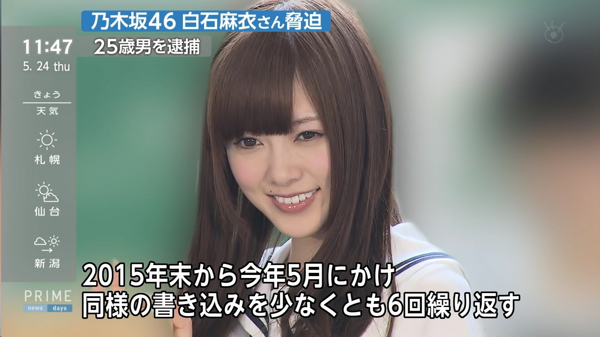 乃木坂46・白石麻衣さんへの脅迫で逮捕