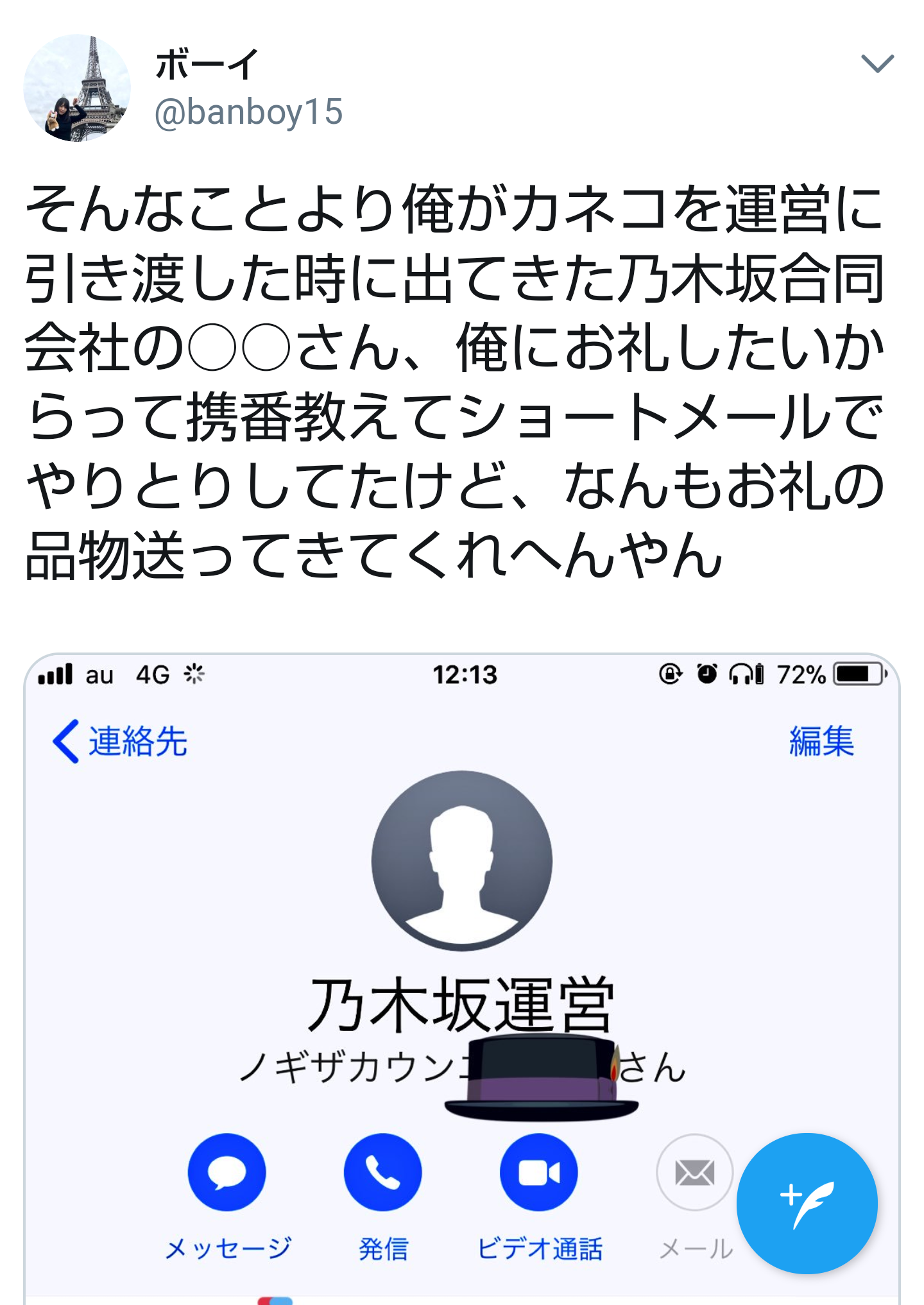 乃木ヲタの親友、白石麻衣TOのカネコ